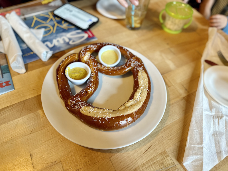 Once we arrived unpacked, we headed out for dinner at one of my favorite spots: Outer Banks Brewing Station. If you know me, you know I love a good soft pretzel. They have some good soft pretzels there!