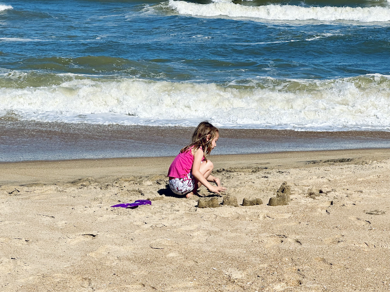 If there isn’t a hurricane, this time of year is actually a really great time to visit the Outer Banks. The weather is still warm, the ocean is warm, and the summer crowds are gone. We’re blessed that we can come and Sadie can be homeschooled from here!