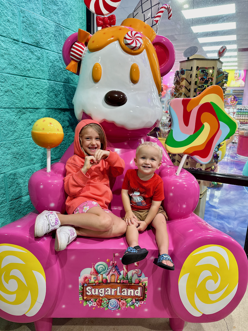 After the trampoline park, we ate dinner and then made a late night trip to the candy store. The kids were in heaven looking at all that candy! Sadie came out with some random things (gummy eggs… gummy eyeballs…!) and was so happy haha.