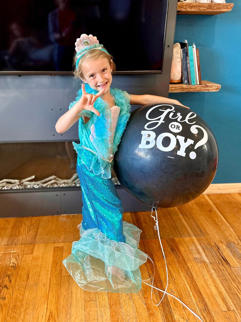 All day, she kept saying she hoped it was a brother because she loves having a baby brother. We did a count down and then let her pop the balloon to find out!