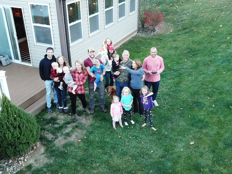 We took this picture (above) with my brother’s drone and were laughing because we had done the same thing in 2017 (below) when we all just had dogs… now there are eight kids with three more on the way. God is good!
