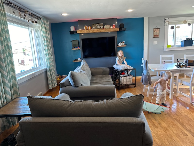 Want to know what it looks like when I get into the zone with cleaning? It looks like pulling the couches off the walls, getting out the hardcore cleaner, and letting the kids run wild (hence Mordecai being shirtless and playing with an umbrella 🤪).