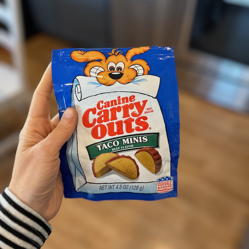 I had these taco dog treats sitting out in preparation for a therapy visit with Niva. The kids we visit love to give her treats, so I always bring a bag with me. Mordecai saw the bag and asked for a treat over and over again and no matter how many times I tried to explain to him that they were for Niva, he just wouldn’t drop it and even started crying.