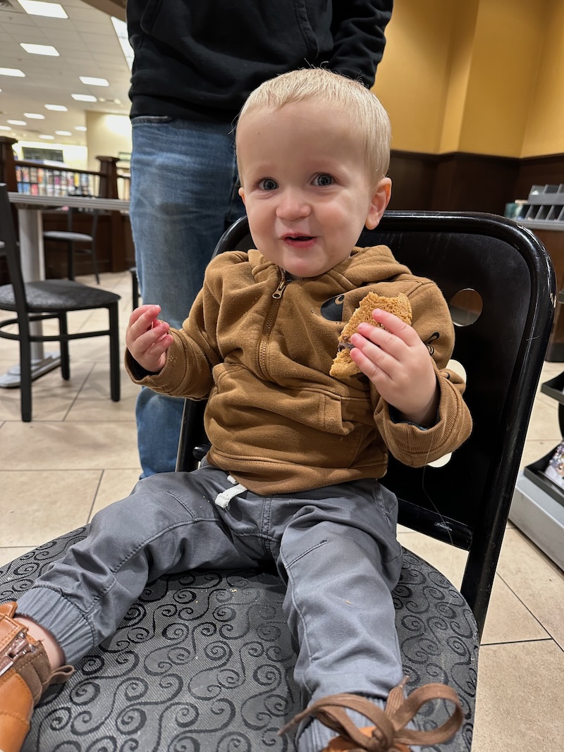 We bought the kids a cookie to split in Barnes and Noble and Mordecai looked like he won the lottery.