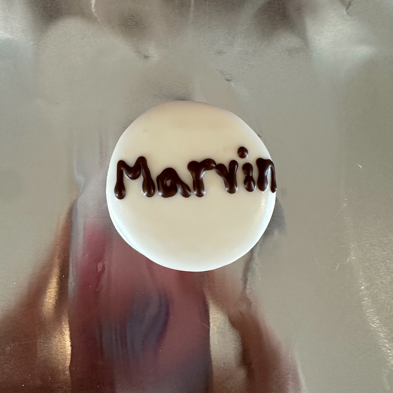 I had a customer message me on Etsy and ask if I could write “Happy birthday Marvin” on an Oreo, and this was my practice one. I never thought I’d be writing random names on Oreos, but here I am 😂