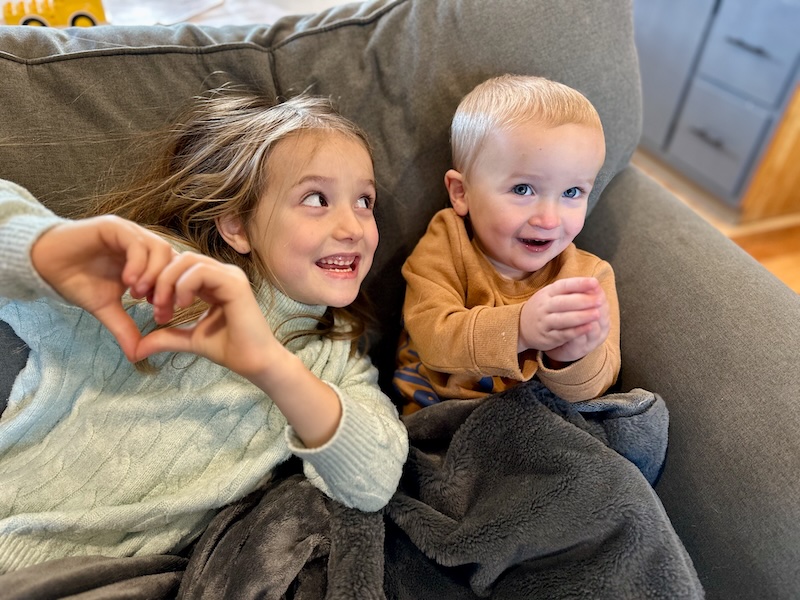 Mordecai wants to do everything Sadie does! She always makes a heart with her hands and he tries so hard to do the same. I love how close they are. Just the other day, I was laying Mordecai down for a nap and he wouldn’t lay down until “sissy” covered him with his blanket and tucked him in. Those types of moments are such a joy and make me so thankful Sadie is homeschooled and they’re both able to be home with me every day.