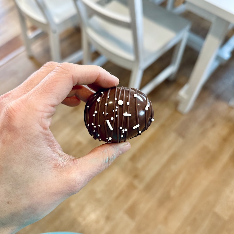When it’s -12 degrees, you practice perfecting hot cocoa bombs. They’re getting better each time! I need to get an actual cocoa bomb mold versus an egg-shaped mold, though 😂