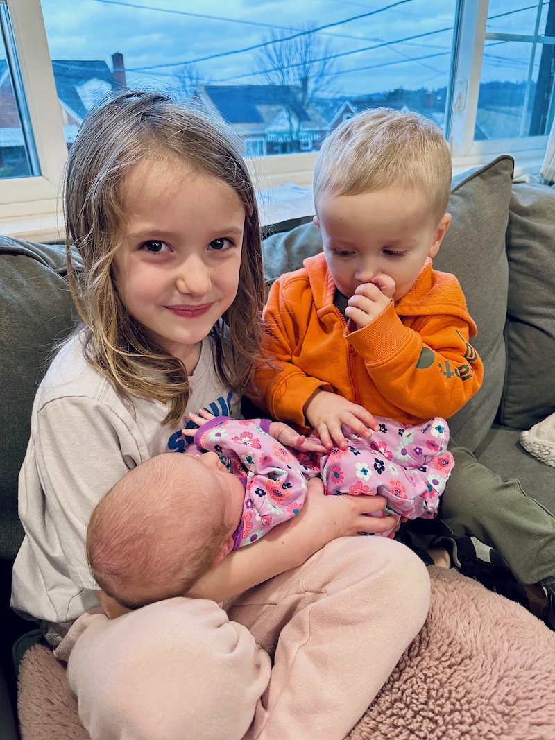 Everyone has been asking me how the big siblings are adjusting and they’re doing great so far! Sadie has been unfazed and Mordecai has had both Jimmy and I home with him since Jimmy took two weeks off of work post-birth. We’ll see how they’re doing when Jimmy is back at work. I’ll be sure to share updates!