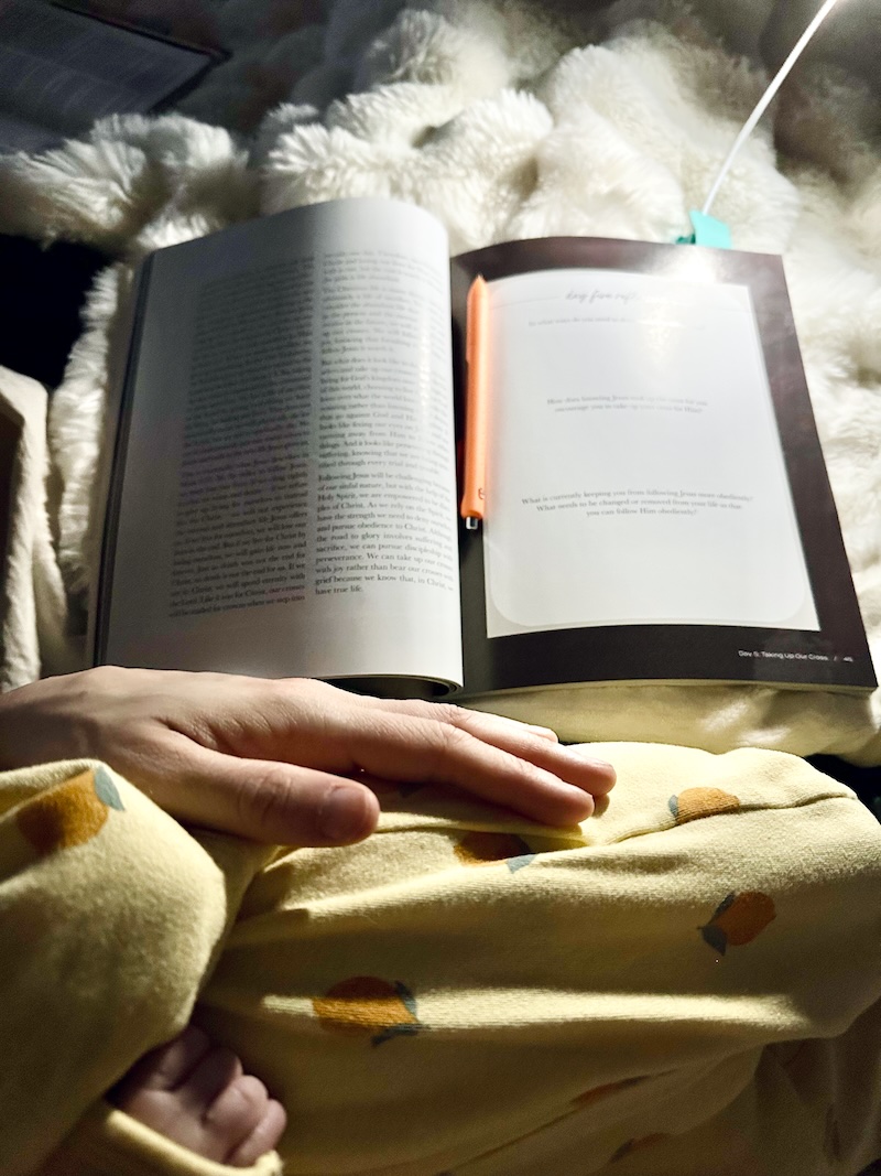 How about me? I’m loving morning Bible study time in bed with coffee brought to me by the sweetest husband while I feed Dakota.