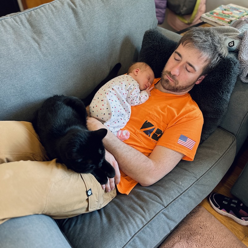He also wants to build the kids a sandbox this summer. I can’t wait for that! He’s been loving naps with Dakota on his chest, too!