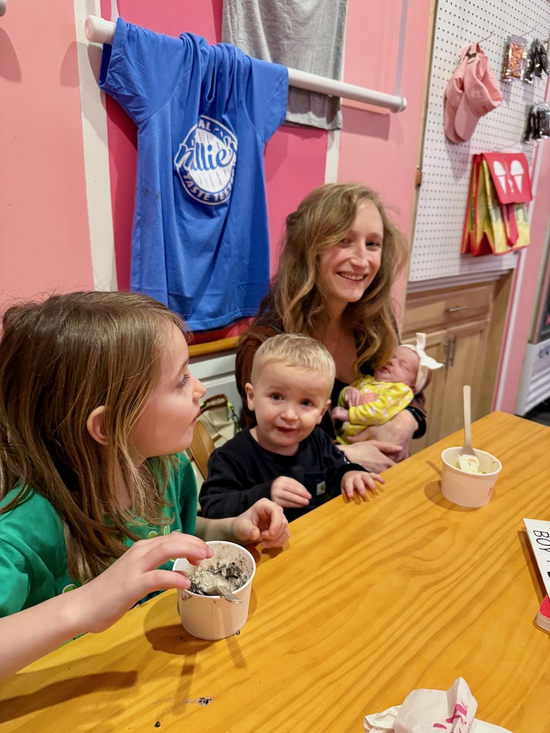 He has been thoroughly enjoying our Friday night bowling routine! Would you believe Sadie and Mordecai both bowled over 100!! He also loves what we do after bowling… ice cream time!