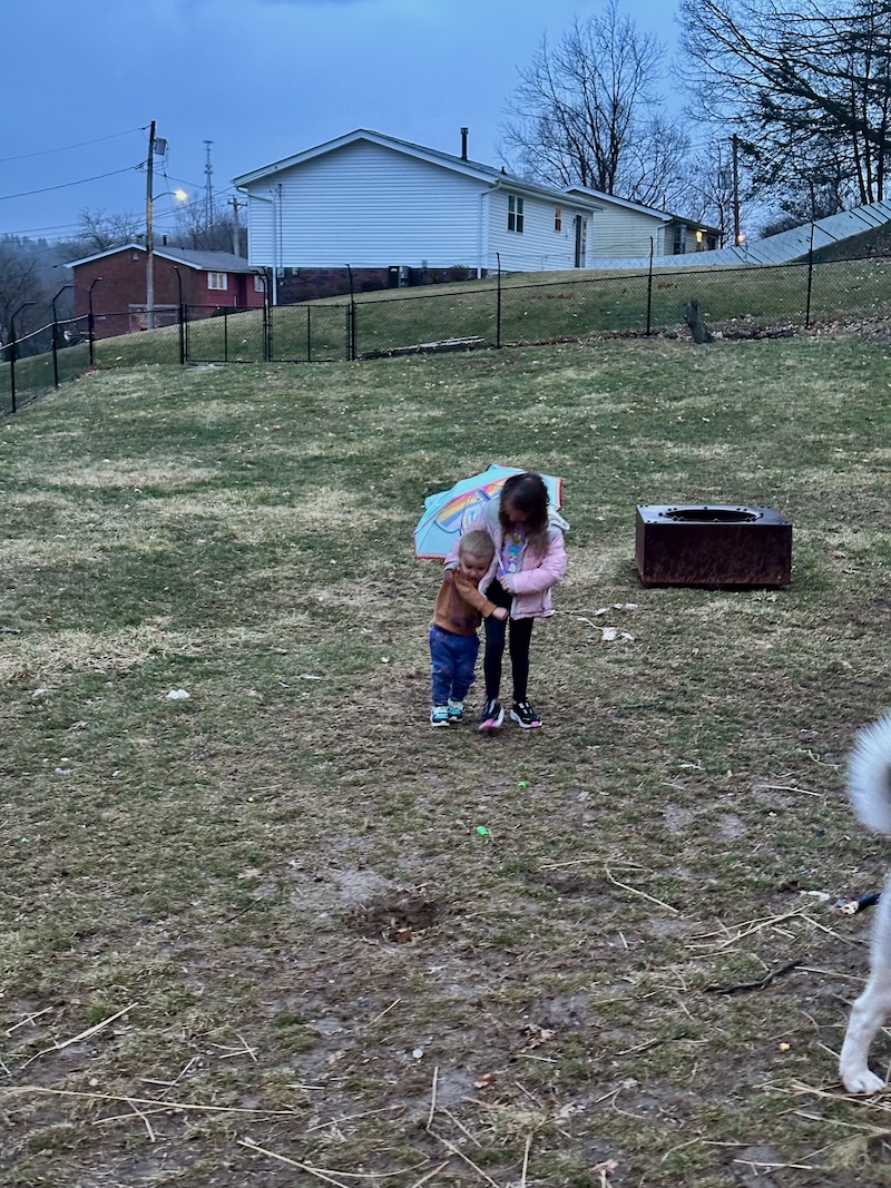 He’s also loving his big sis. These two play and play and I love to see it! One night, we had windy weather and they were out in the yard braving the elements and playing some sort of game with Sadie’s umbrella. So cute!