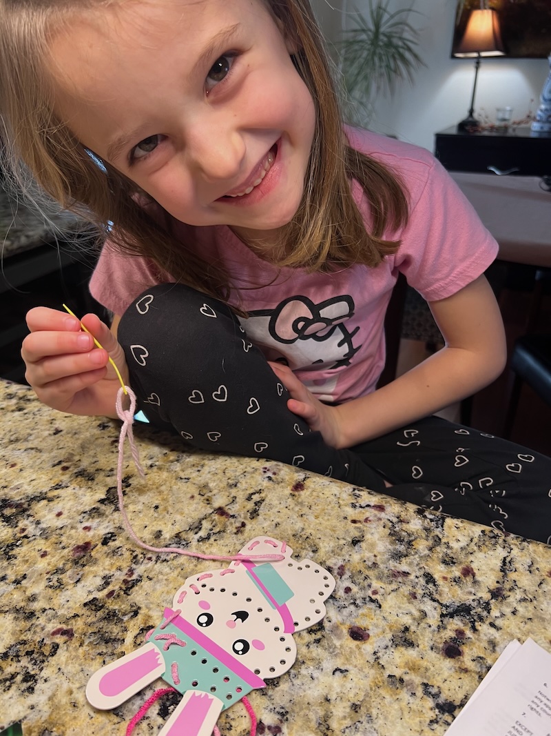 Sadie is also loving learning to sew! I’m pretty useless with fabric arts, but my mother-in-law bought Sadie a kit and is teaching her a few basics. I love her smile in this picture. She’s so excited!