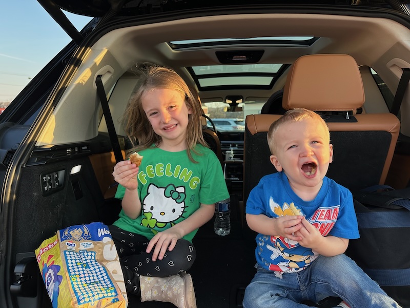 1. Can he stop growing? Ever since Dakota was born, Mordecai just feels and looks so grown up. He loves blowing bubbles around the yard with his leaf bubble blower toy and it’s too cute! We went to Jimmy’s work the other day and Mordecai went with Jimmy into the shop to operate the crane–his favorite!–and he came out all dirty. We drove home and he fell asleep. Before bringing him inside, I took a moment to just study him. His cute dirty hands, his full cheeks, his blonde hair, his long eyelashes. I love this boy so much 🩵