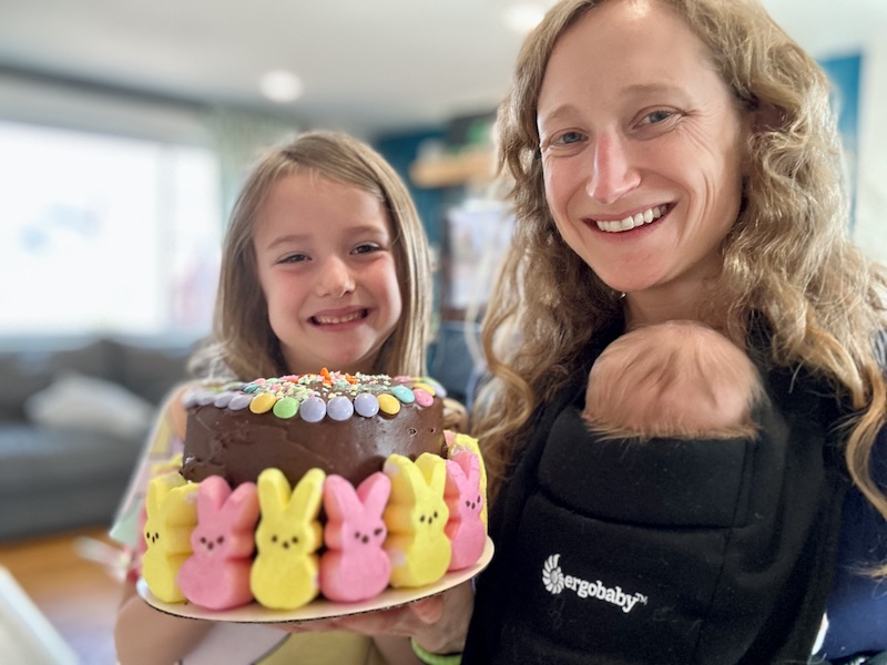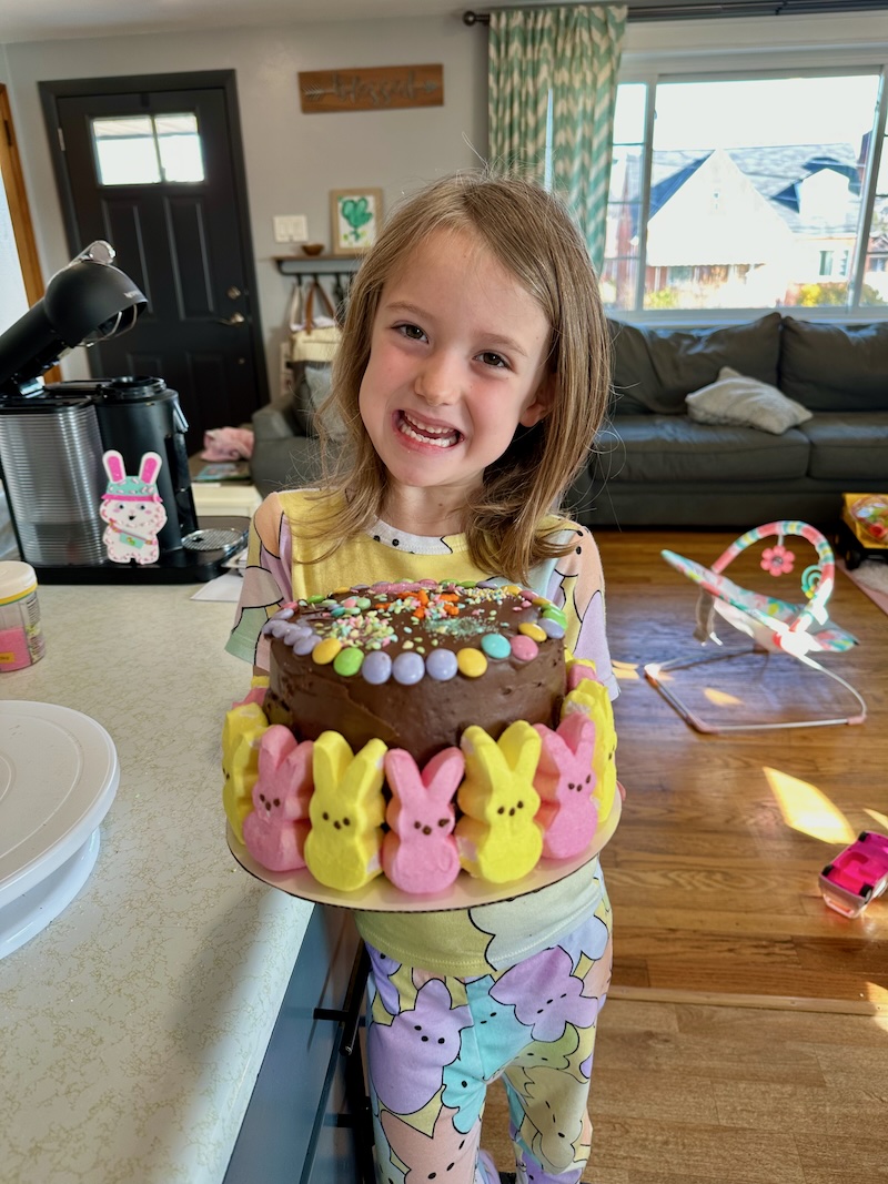 She decided she wanted to make a Peeps cake for spring, so that’s what we did. We woke up one morning and both Mordecai and Dakota were sleeping so we started baking her cake at 7:00 am 😂
