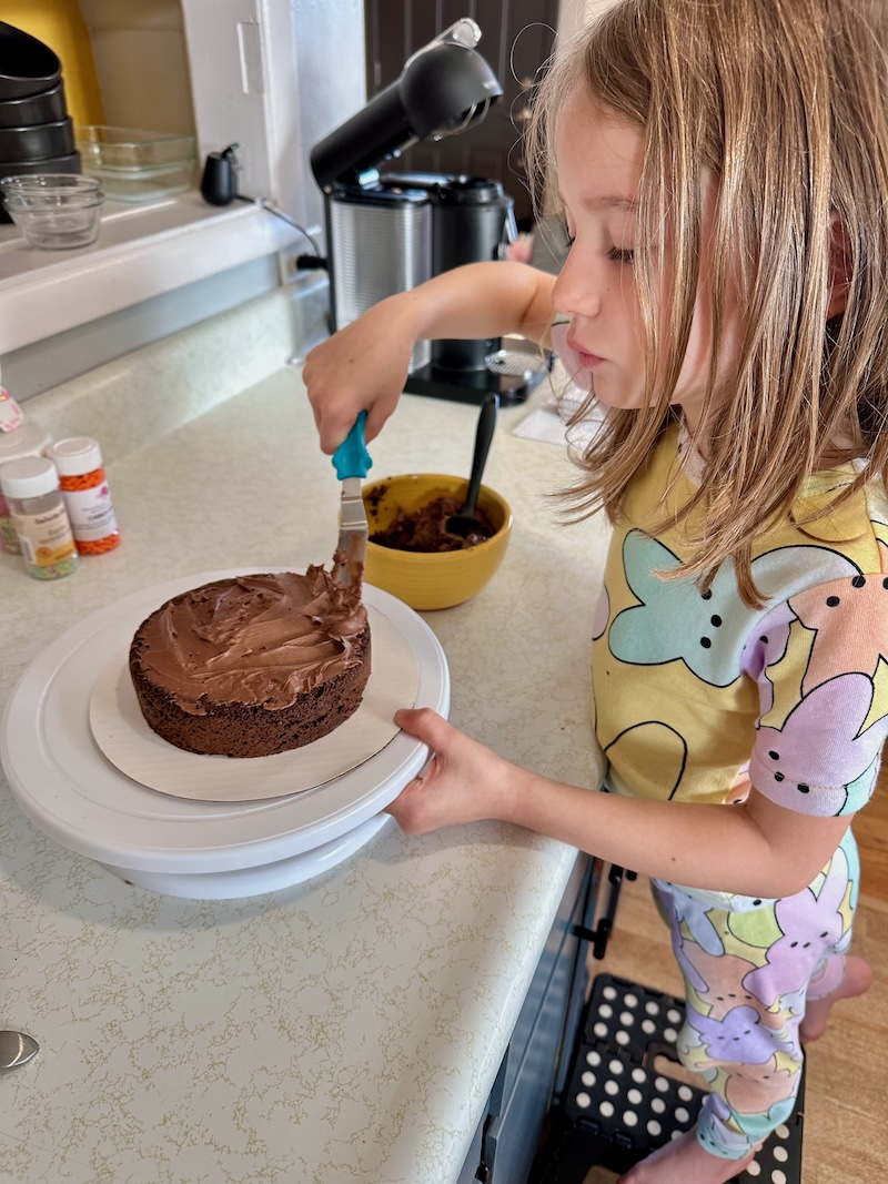 I have to say, Sadie honestly surprised me. When I stepped back and let her take the reins, she was more than capable of baking and decorating a cake. In fact, I think she did a really good job!
