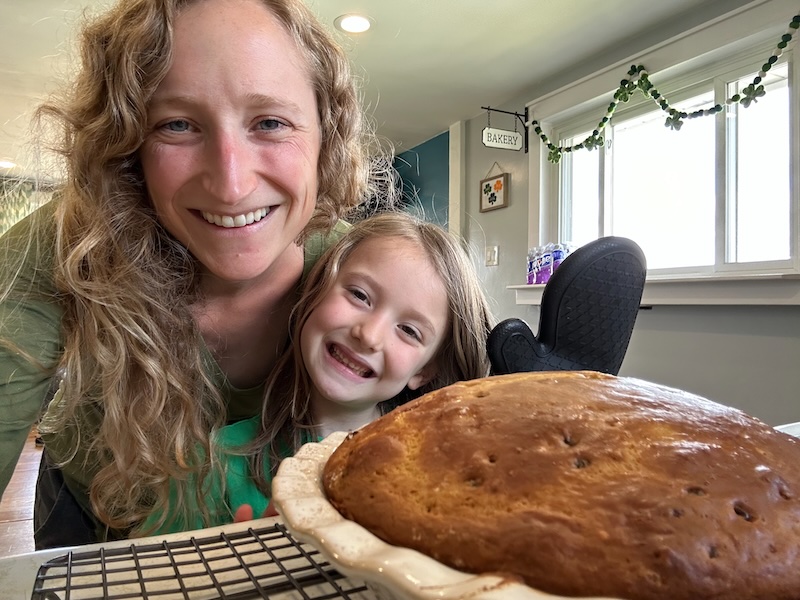 We made Irish soda bread and it was so much fun! It was the perfect bread recipe to make with a child because it doesn’t have any yeast or need to be kneaded. So, no waiting time and less mess 😉