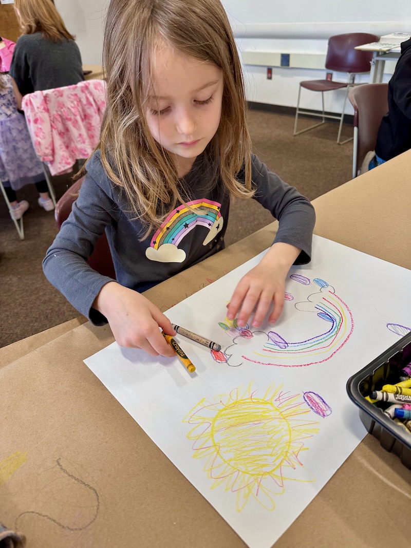 I brought the kids to a craft activity at the library this week and Mordecai snuggled on my lap! Sadie is still freaked out by Mordecai’s pointy “vampire teeth” and I feel like this picture showcases them well 😂