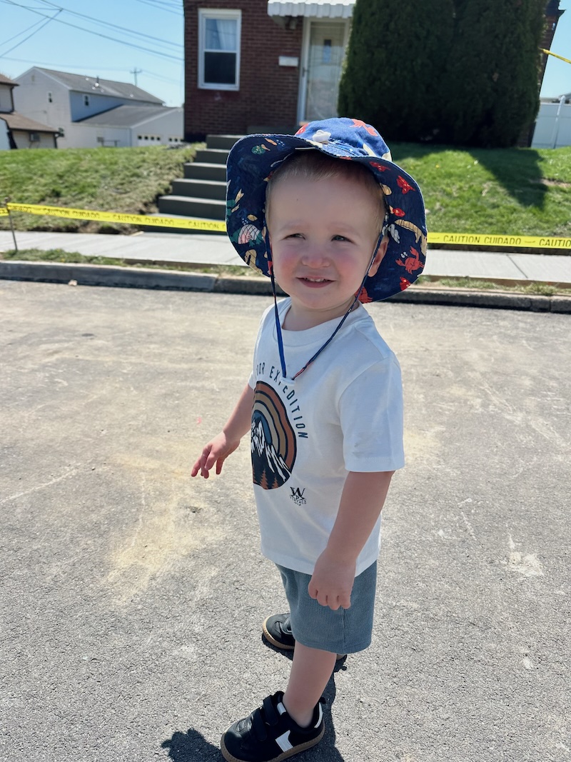 Mordecai’s sun hat from last year is a little small. Sorry, buddy!! It’s now the season that I need to get the kids sandals and hats and a fresh bottle of sunscreen!