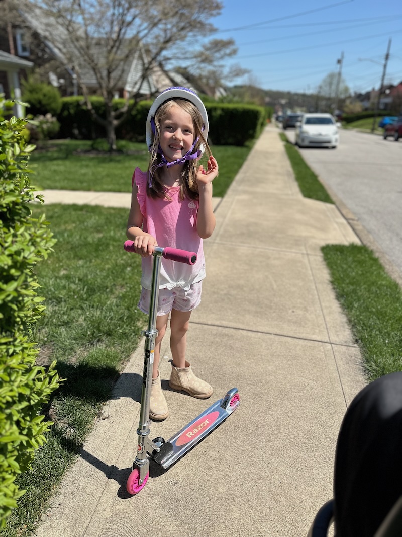 Sadie has been into her scooter lately. She flies on that thing! I used to have the same brand and model when I was a kid and loved my Razor scooter!!