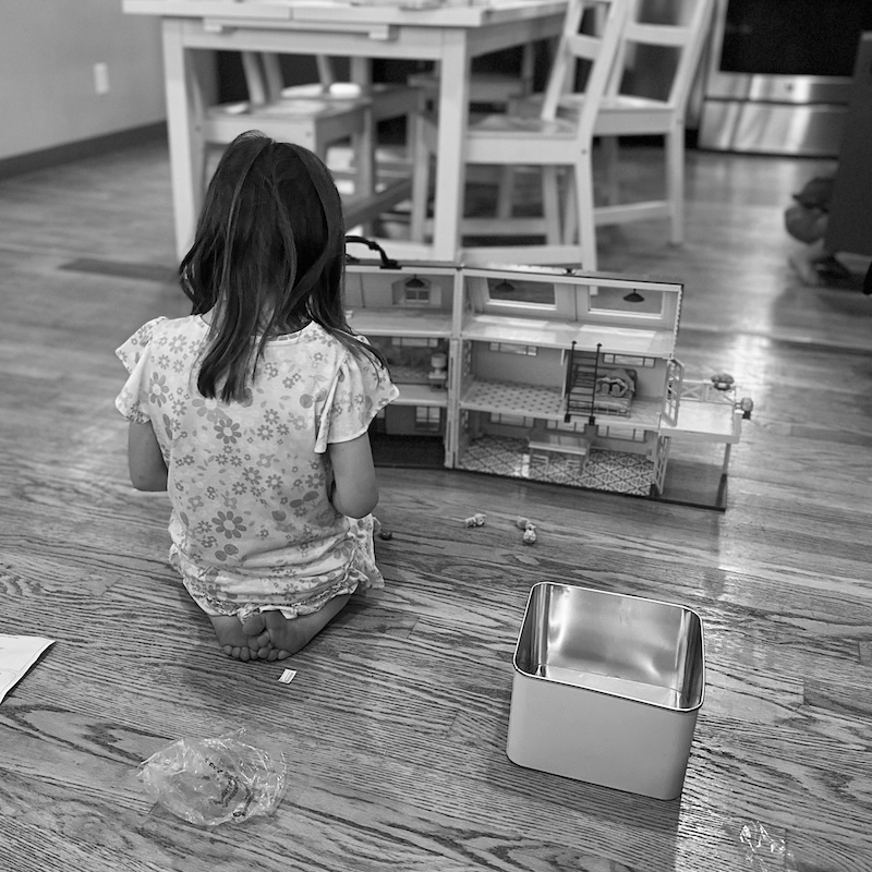It’s so sweet seeing Sadie totally immersed in something. She was playing with her dollhouse here. She loves to make stories, set up scenes, and create characters.