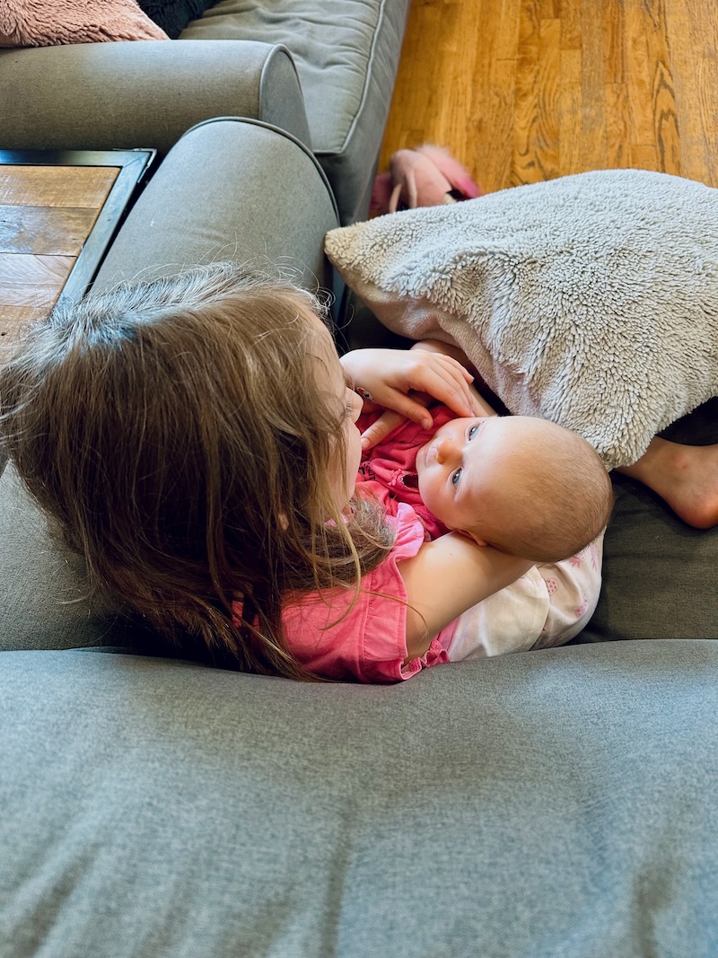 Sadie is such a wonderful big sister. She “baby sat” Dakota for me while I took a shower the other day and I walked into the room and Sadie was so patiently entertaining her and just showing Dakota a toy. It made me tear up!