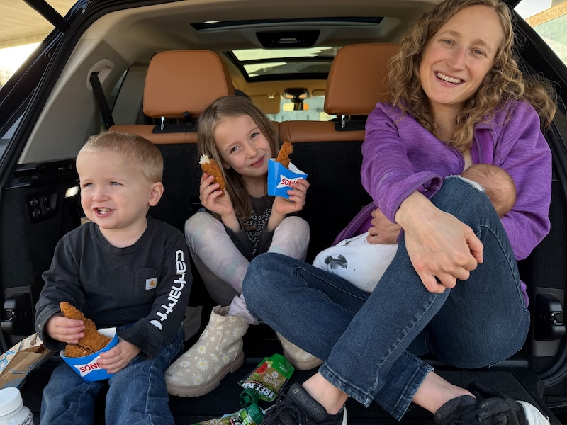 We made it home and then right in the driveway, Sadie fell and skinned her knees. There was blood and plenty of tears. While I was kissing boo boos and putting bandages on knobby little knees, Niva had escaped our fence. Dakota was on our bed crying, Sadie was crying, and it was Mordecai’s nap time. I felt stretched in every direction! We made it through the crying-bandage-nap preparations and a kind neighbor brought Niva back.