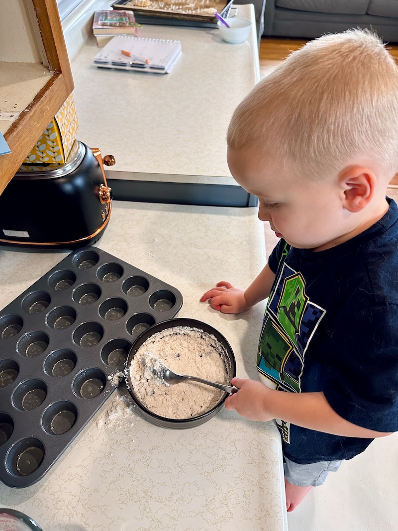 Mordecai and I made mini muffins together. He loves being in the kitchen!