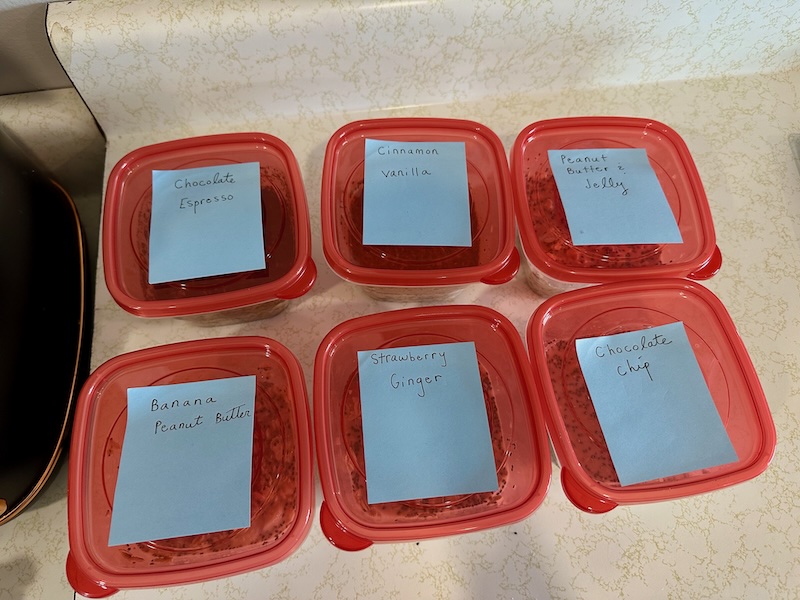 Two friends of mine gave birth over the weekend, so I’ve been busy making meals. One friend requested overnight oats. I had fun making a bunch of different flavors.
