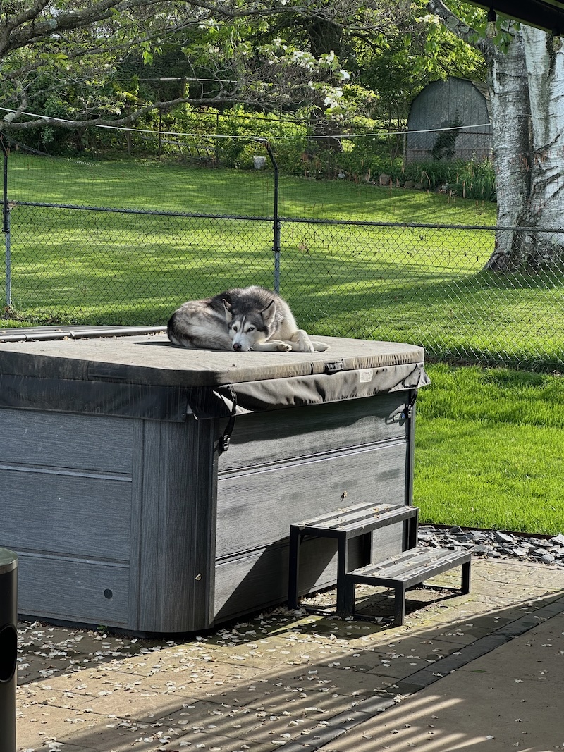 Aaaand Runah did some sunbathing on our hot tub ☀️