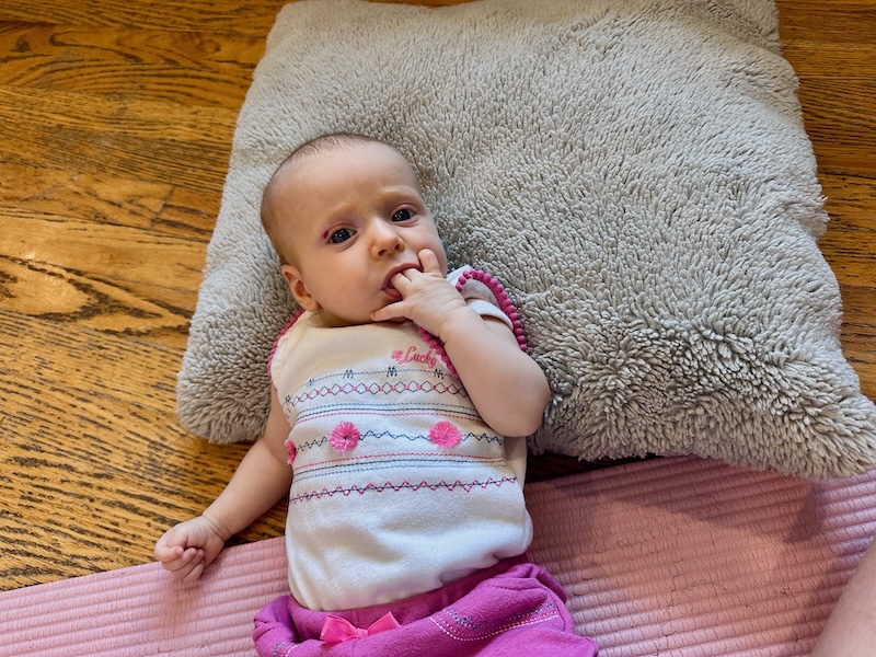 Once Sadie finished up, she got some time to play Minecraft and I had Dakota do tummy time. Before I knew it, she was sucking her fingers and looking extra sleepy.