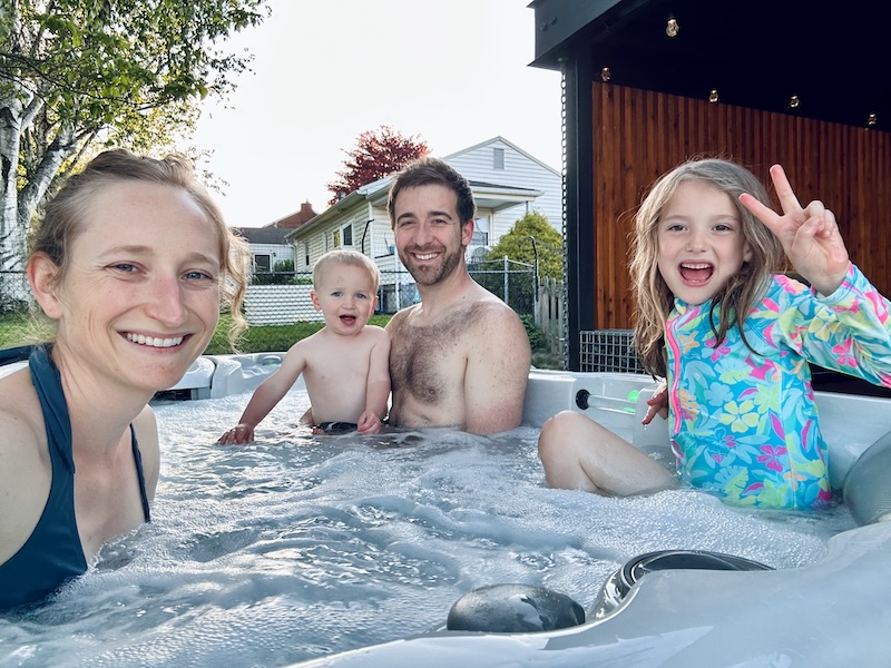 We all agreed that it was the perfect night to jump in the hot tub! We made our walk a quick one and then I laid Dakota down for bed and we took the “big kids” into the hot tub for some relaxation time before bed!