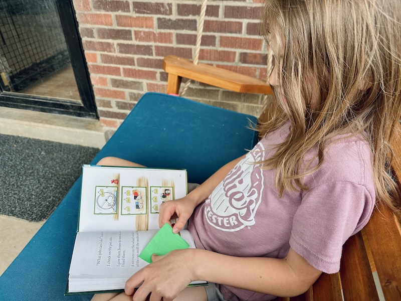 I fed Dakota on our porch swing while Sadie did her reading lesson for the day: she had to read a story in her curriculum’s storybook.