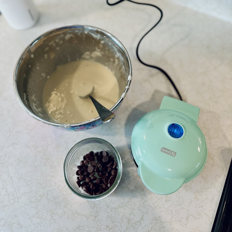 Mordecai is our waffle monster. He asks for chocolate chip waffles every day. I bought a mini waffle maker so I can keep up with his addiction.
