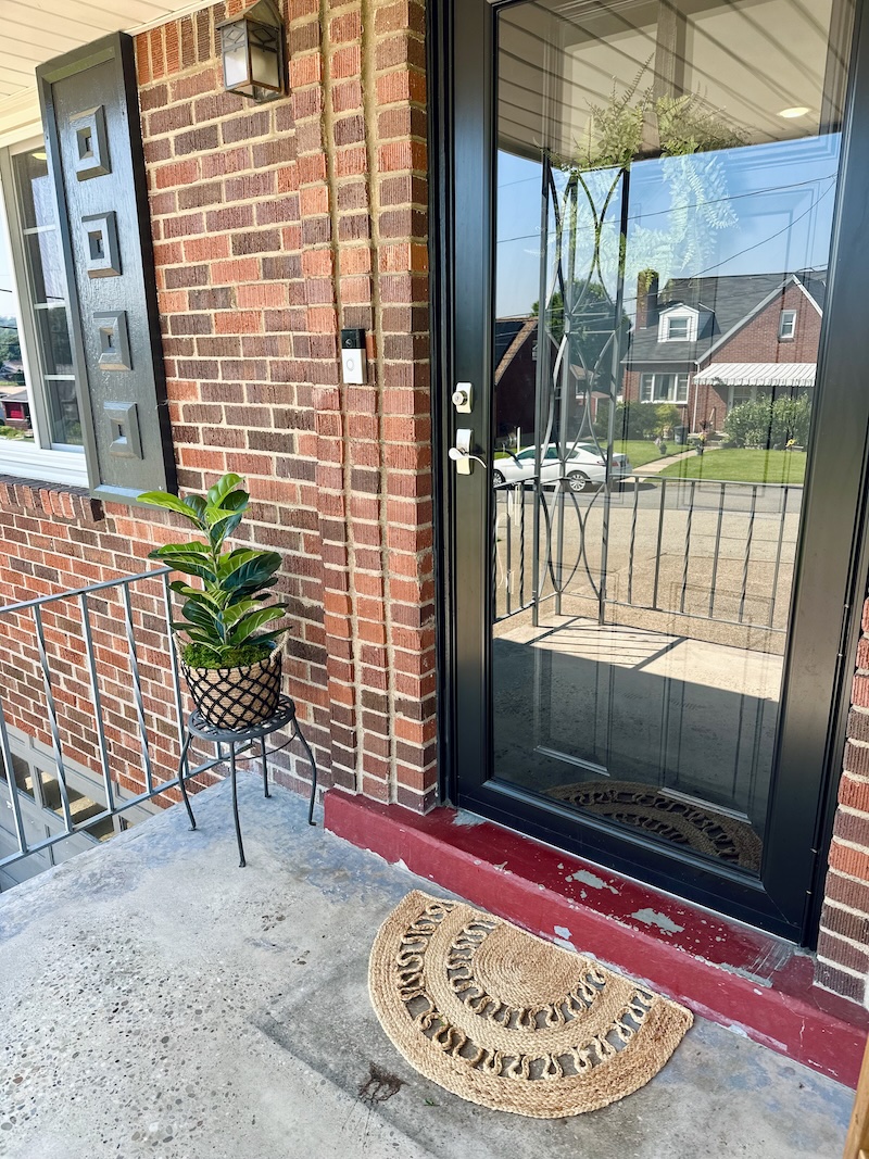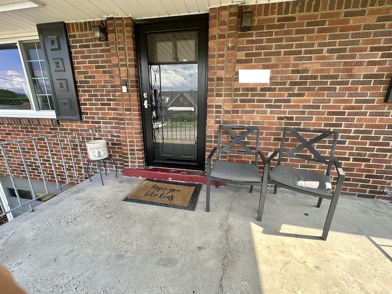 We had some chairs, an empty planter, and a beat up rug. No wreath, no plants, and no table. It wasn’t very inviting!