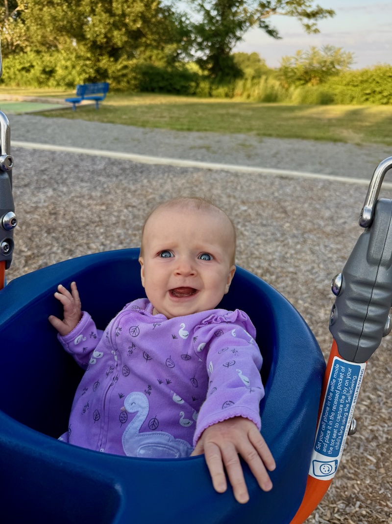 Current fun We took the kids to a park and Dakota sat in a swing for the first time. She loved it!