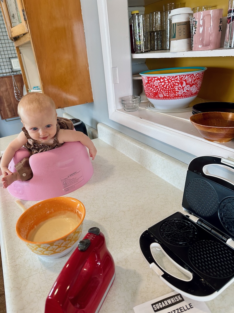 I am loving my new toy. What is it? A pizzelle maker! I have been making pizzelles and stroopwafels like crazy lately! I love that I don’t have to turn the oven on, either. Dakota likes to sit in her bumbo and watch me work. Soon enough she will be able to enjoy some goodies 🙃