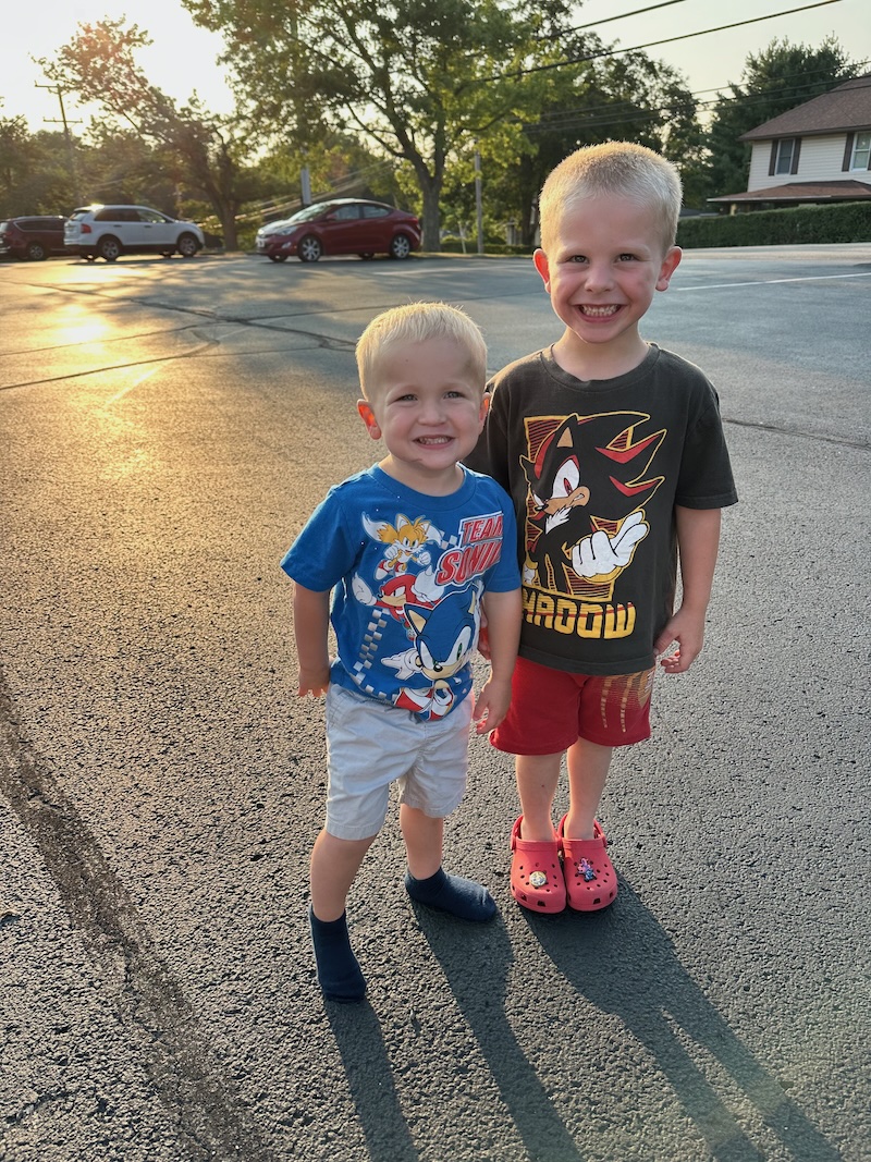 The boys were so proud of their Sonic the Hedgehog shirts! I loved playing Sonic growing up, so it’s fun to see it make a comeback these days. Also, I can’t describe what a blessing it is to raise kids at the same time and same age as my sister. It’s so incredibly special 🫶
