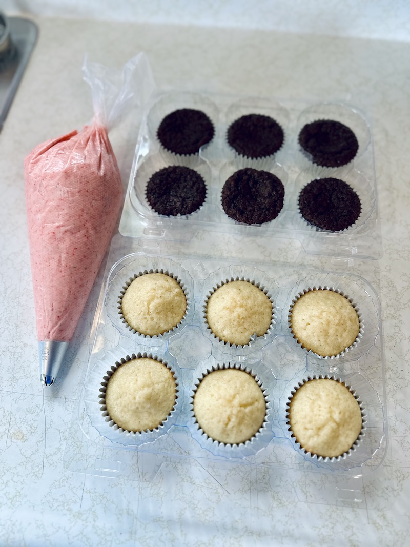 My friend’s daughter turned a year old and she asked me to bake cupcakes to celebrate. She wanted simple vanilla and chocolate cupcakes with strawberry buttercream 🍓