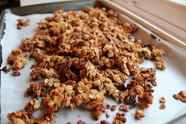 - Don’t crowd your pan! Your granola won’t get crunchy if it’s all lumped together on one baking sheet. I recommend splitting each recipe between two baking sheets.