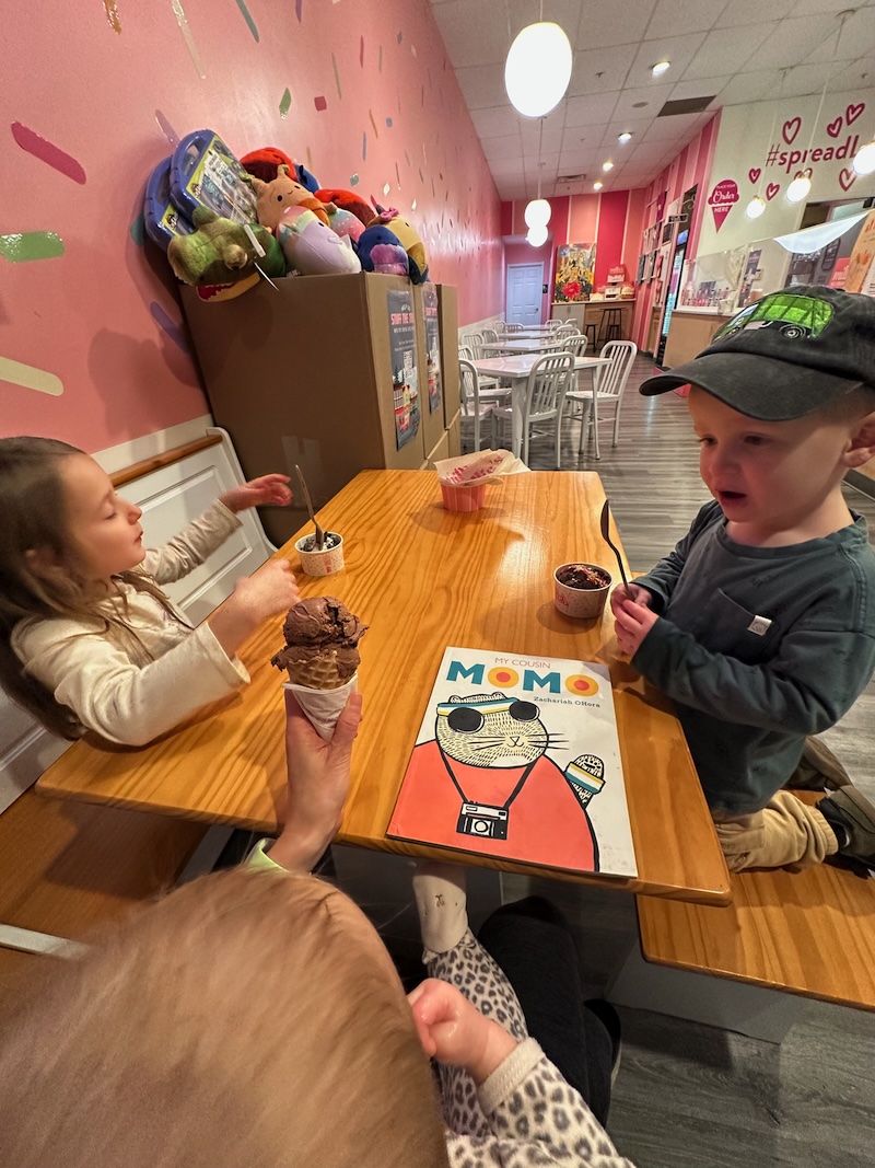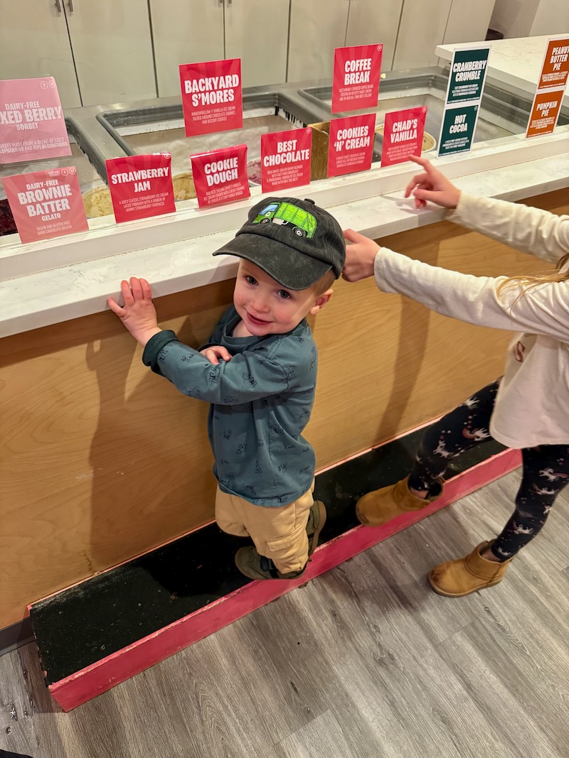 There’s truly nothing like getting ice cream before the kid’s bedtime when it’s thirty degrees outside! We had to get out and about, though. And also—how cute is Mordecai in his garbage truck hat?! My sister gave it to him for his birthday, and his face absolutely lit up when he saw it. Like, I wish I could bottle that expression up and replay it whenever I’m sad. He was thrilled to have his very own garbage truck hat and proudly wore it all night long.