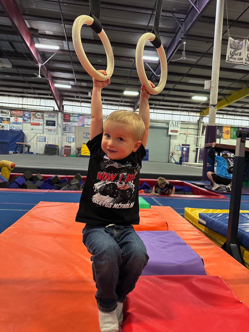 After having Sadie’s birthday party at a local gymnastics gym back in September, I knew right away I wanted to do the same for Mordecai’s third birthday. The entire experience is just so easy for parents and so fun for the kids. The facility takes care of everything—the décor, hosting, and even the food—which is such a gift.