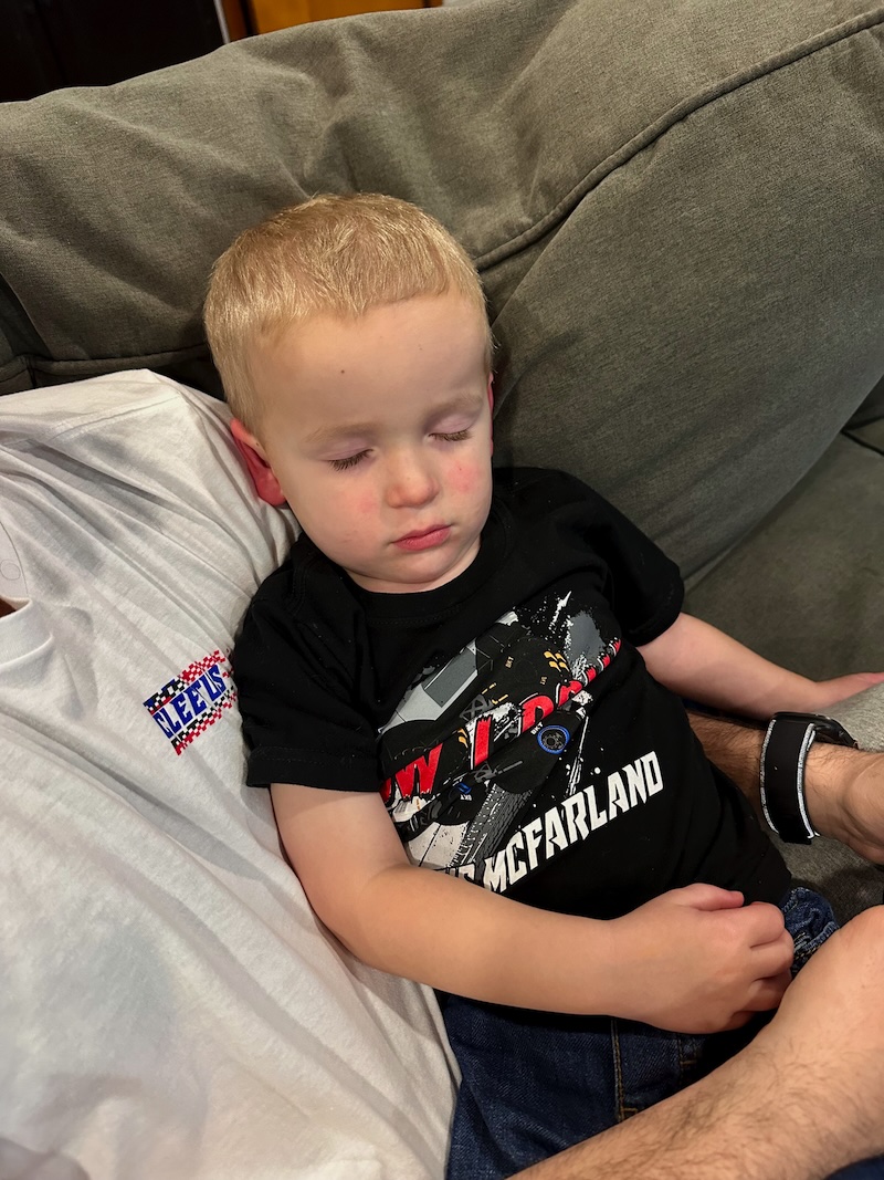 Eventually, all the fun caught up with our little guy and he crashed. He fell asleep on Jimmy and took a quick nap, and Jimmy said he loved every second of it. It’s so rare for a toddler to fall asleep on Mom or Dad, and it brought him right back to the newborn days with Decky. 🤍