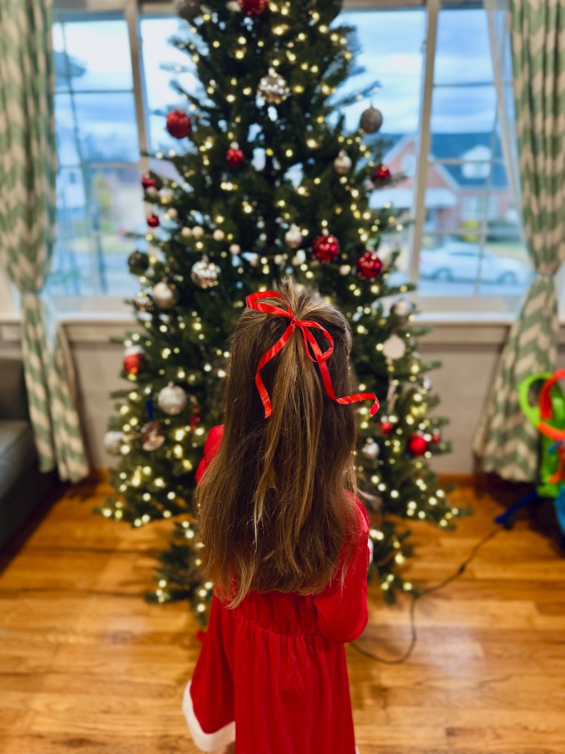 As our weekend wound down, I started to do a little Christmas prep. I wrapped advent calendars for Sadie and Mordecai, along with all of the kids’ Christmas-themed books so they could open one each day. Sadie even pulled out her Christmas dress to wear to church on Sunday and had me tie a red ribbon in her hair.