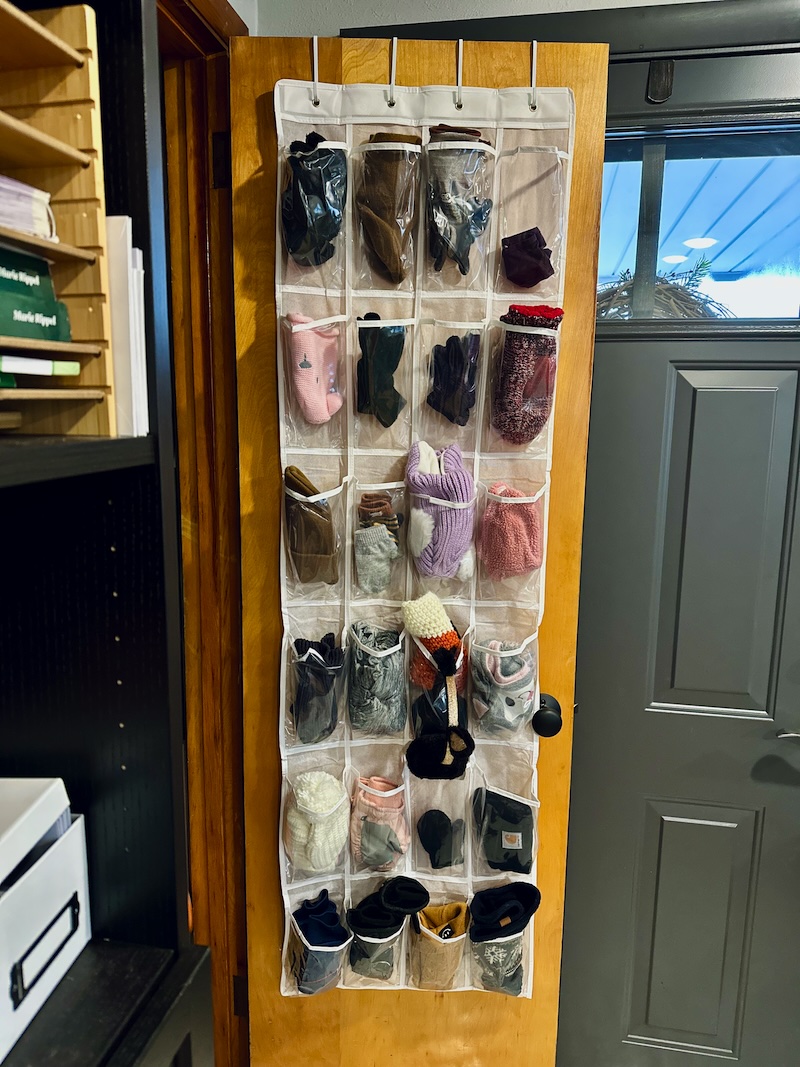 Instead of shoes, our organizer holds everyone’s mittens and hats. So far, this system is working well!