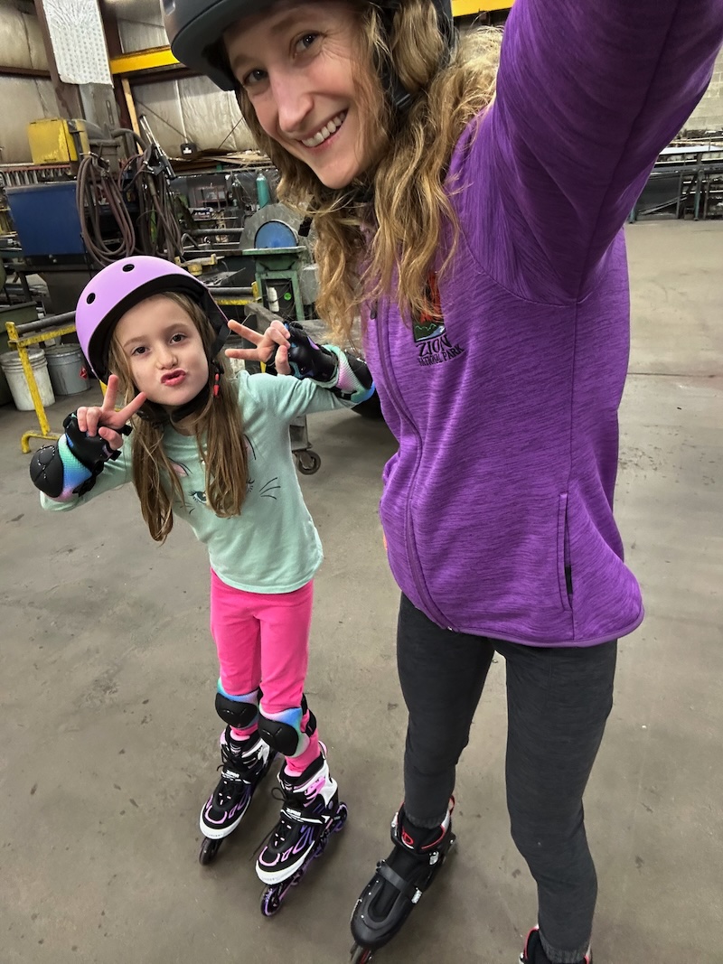 By mid-afternoon, everyone was a bit stir crazy. It was frigid outside and nothing was opened, so we made our own fun! We went to Jimmy’s welding shop and Sadie and I rollerbladed.