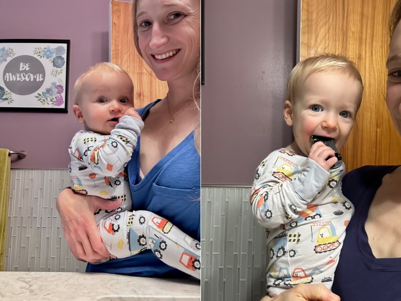 I pulled out some of Mordecai’s old pajamas for Dakota and found a picture of him in them as a baby! They definitely look similar but also have totally different head shapes, haha. Mordecai is on the left and Dakota is on the right.