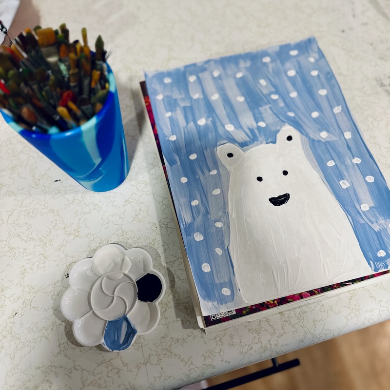 Speaking of crafting, we also did some painting at home! We have picture frames in our entryway that we fill with themed art each season. Sadie and I painted polar bears.