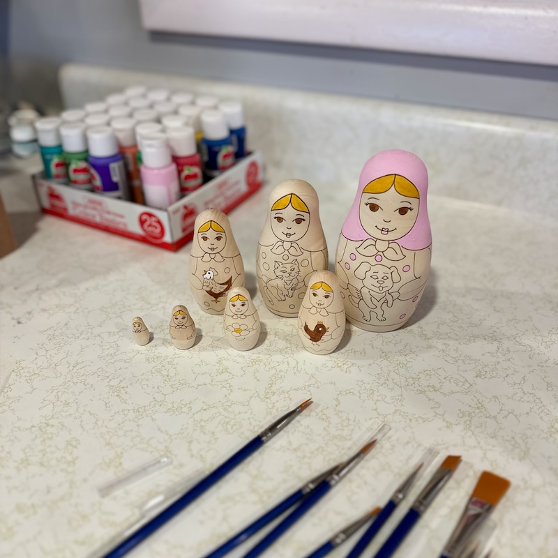And I started a fun craft project! Sadie is starting to collect Russian nesting dolls, so I ordered a set of unpainted ones and am hand-painting them for her as a surprise. It’s going to take me forever since I’m never away from her for long, but I cannot wait to surprise her with them!! I was able to start the project when she was outside playing with her friends.