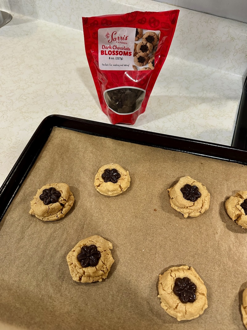We went home, had dinner, and then I made peanut butter blossoms with Sarris Candies chocolate blossoms that I picked up on our recent visit. They came out great! Sarris chocolate really is just something else!